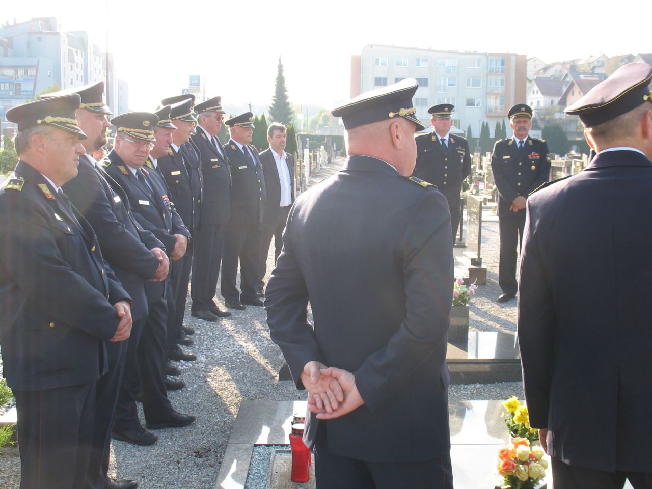 praznuje 70-letnico tudi Gasilska zveza Slovenije, so člani Poveljstva GZS pred sejo, ob 15.30, obiskali grob MIRANA ŠPICARJA na pokopališču Ločna Novo mesto, in se tako s cvetjem poklonili prvemu in dolgoletnemu (1949 – 1963) poveljniku Gasilske zveze Slovenije.