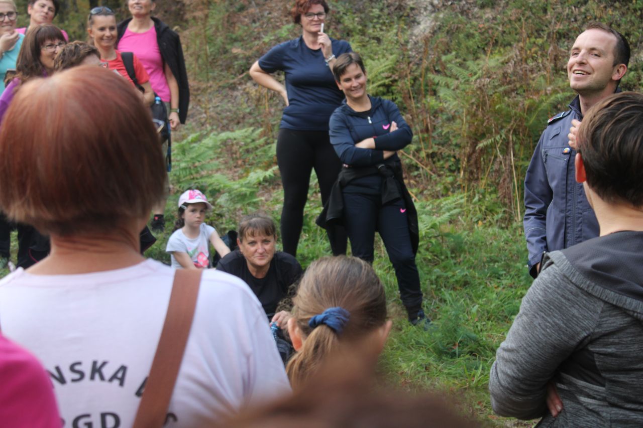 Pred začetkom pohoda je predsednica Komisije za članice GZT Olga Smolič k pozdravni besedi povabila: predsednika društva gostitelja Tomija Kocjana, predsednico Komisije za članice GRD, Melito Blatnik, predsednika GZ Trebnje, Petra Jarca in članico Sveta članic GZS Vesno Kozole iz Posavske regije. Pozdravom je sledil še nastop Mažoretk Trebelno pod mentorstvom Neli Bedene in vodje Polone Urek, domači gasilci operativci pa so pripravili kratko poučno vajo, maščobni vzbuh, ob komentarju Ferda Švajgerja. Nato so se podali na pot pod vodstvom Lojzeta in Saše Bevc. Prvi postanek je bil pri Čebelarjih Trebelno-Mokronog, kjer so pohodnice pričakali ob čebelnjaku na odlični razgledni točki predsednik in nekateri člani društva. Predsednik Marjan Starič je predstavil delovanje društva, nato pa so sledile pokušine medice in različnih vrst medu. Na mikroskopu je bil možen tudi ogled mikroskopsko male sovražnice čebele. Pot so nadaljevali do kapelice sv. Rozalije, od tu pa po razgibanem terenu od pašnikov, gozdnih poti do mesta ostankov gradu, kjer je pohodnice pričakal član PGD Mokronog, Tadej Grabnar, geograf in vodič, ki je predstavil še zgodovinsko podobo teh krajev ob ostanku gradu ter vse skupaj začinil s prijetnim humorjem. Nadaljevanje poti je potekalo po cesti proti Trebelnemu, nad katero se nahaja lepo obnovljena cerkvica sv. Mihaela, ob njej pa je v teku obnova rotunde s kostnico.
