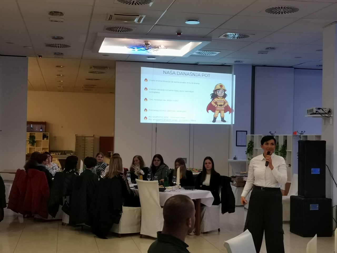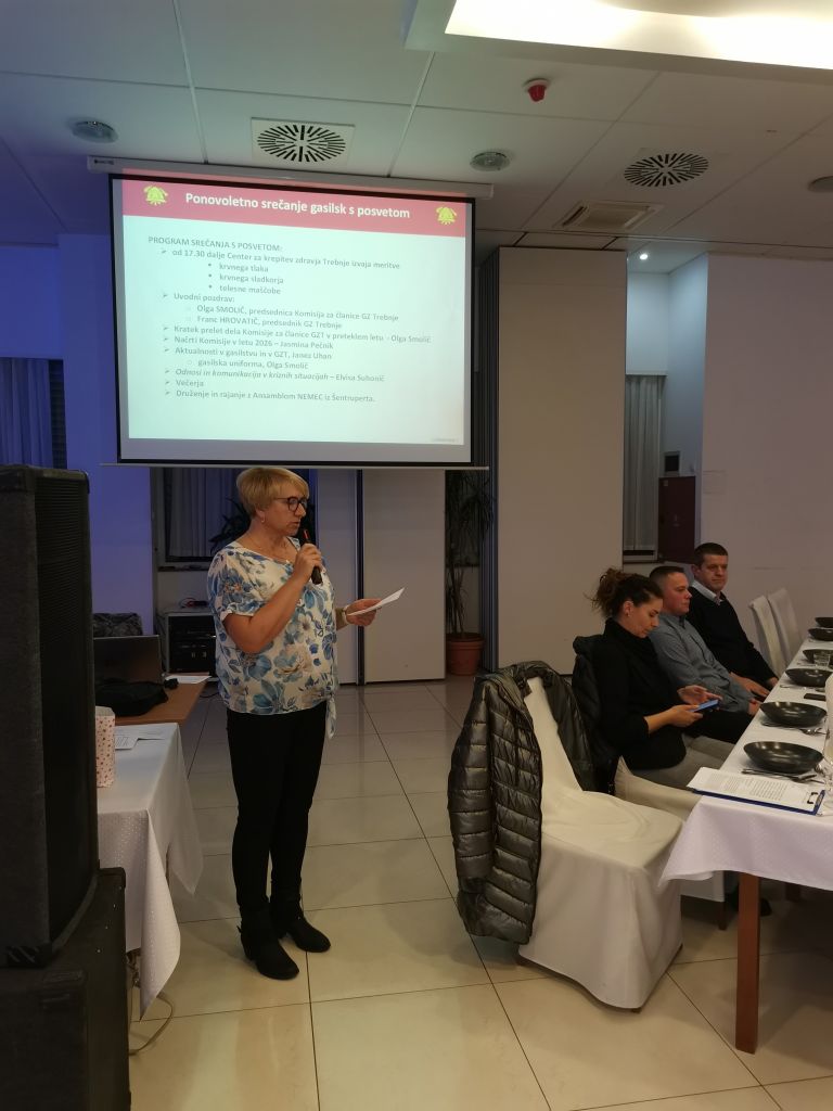 Pred začetkom sta medicinski sestri Centra za krepitev zdravja Trebnje opravljali preventivne meritve krvnega tlaka in krvnega sladkorja. Nato sta predsednica Komisije za članice in predsednik GZT, Olga Smolič in Franc Hrovatič izvedla uvodne pozdrave, nakar je Olga nadaljevala s poročilo o delu komisije v preteklem letu, njena namestnica Jasmina Pečnik pa je podala načrt aktivnosti za tekoče leto. Poveljnik GZT, Janez Uhan, je prisotne seznanil z akualnimi informacijami v gasilski organizaciji ter s poudarki na dogodkih naše zveze tega leta. Gasilskim temam je sledilo predavanje Elvise Suhonič, diplomirane delovne terapevtke z več kot 25-letnimi izkušnjami, ki se je v svojem podajanju osredotočila na temo odnosov in komunikacije v kriznih situacijah. Zanimivie izkušnje in dejstva, ki so pritegnile pozornost in razmišljanje prisotnih.