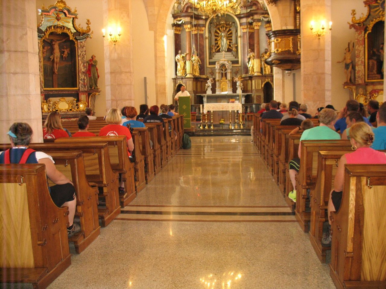 Za drugo skupino, ki se je odločila za krajšo, 8 km dolgo pohodno Baragovo pot, so trebanjski gasilci poskrbeli pred odhodom na pot še za predstavitev opreme in tehnike ter delovanja društva, nato pa jih je vodič Uroš Primc v spremstvu pomočnikov povabil na pot. Prvi postanek je bil že v župnijski cerkvi s kratko predstavitvijo domačega župnika, ki jih je nato pospremil še v Baragovo galerijo, kjer so si ob njegovi razlagi lahko ogledali zanimivo razstavo na temo Barage in čipke, ki je obsežen evropski projekt v več delih Občine Trebnje in klekljarske sekcije Žnurce, ki deluje v okviru Kulturnega društva Trebnje z namenom predstavitve življenja, dela in pomena Barage. Nato je tudi druga skupina na pot krenila za trebanjskim gradom do Odrge in do Vrhtrebnjega, kjer so jih prav tako zaustavili s prijazno gesto tamkajšnje gasilke in gasilci. Od tu so pot nadaljevali skozi Grmado (rojstni kraj nadškofa Alojzija Šuštarja) ter po gozdu do Male vasi, kjer je imela tudi ta skupina priložnost slišati predstavitev Uroša Primca o življenju in delu Barage, nato pa še ogled Baragove spominske sobe. Skoraj pred ciljem jih je čakala še krajša pot do Občin in tam tudi ogled Jurjeve domačije, nato pa prostor pod šotorom PGD Občine in okrepčilo z malico ter kulturnim programom, ki so ga pripravili v sodelovanju z izvajalci: iz domačega društva harmonikarja Borut Čeh in Gašper Kek, dolenjski Serpentinšek v vlogi Robija Glivarja (PGD Dobrnič) ter Mešani pevski zbor PGD Zbure (GZ Novo mesto) z zborovodkinjo Aleksandro Barič Vovk.